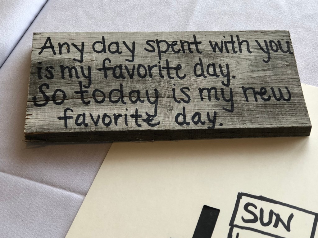 The sweets table balanced a refined, yet rustic “Hundred Acre Wood” vibe. It featured a combination of family-favorite recipes and some of Mom and Dad’s favorite local flavors. The hand-lettered Pooh quotes were especially meaningful to the excited parents-to-be.The parents will use these hand-lettered signs as part of their nursery decor.What’s a baby shower without games? The calendar becomes another fun keepsake for baby.Guests tested their estimation skills, but Grandma Anne guessed the closest!